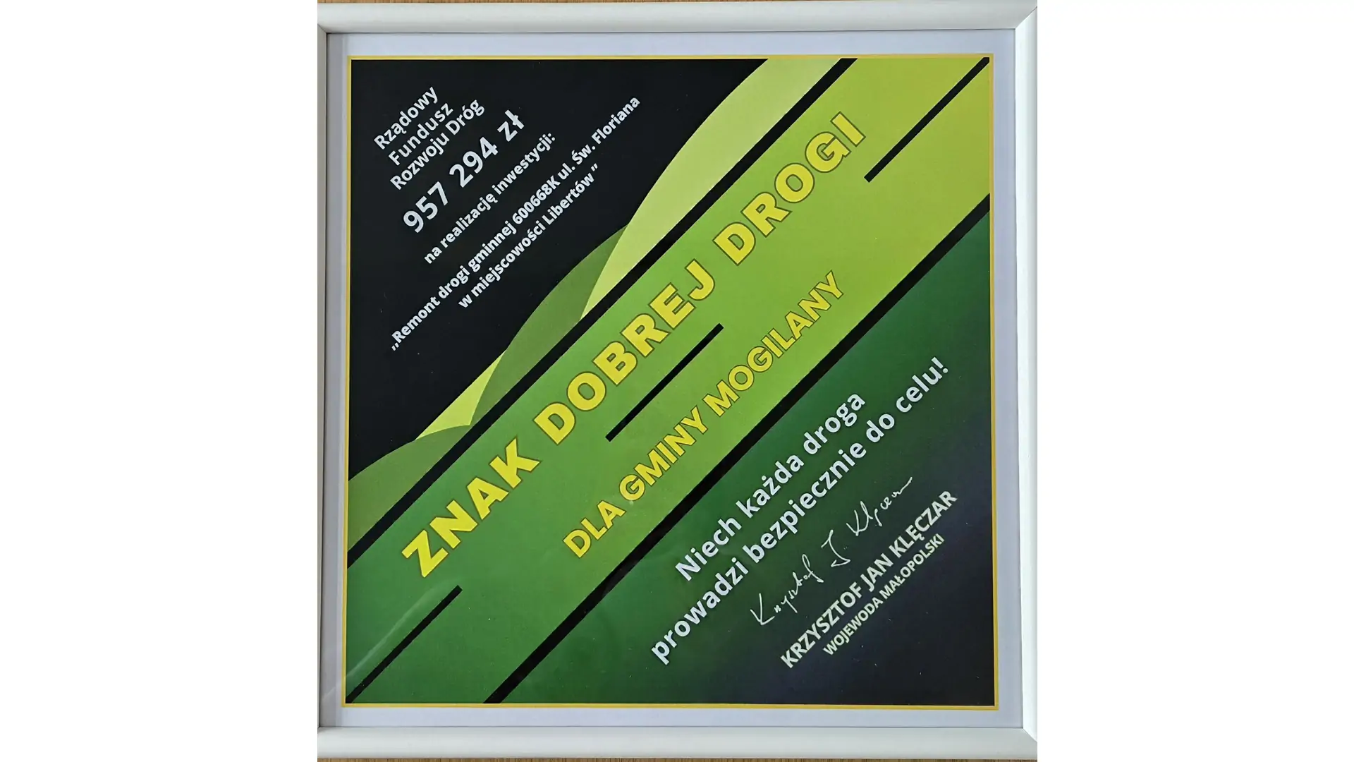 W dniu 27 marca 2026 roku Wójt Gminy Mogilany podpisał umowę z Wojewodą Małopolskim Krzysztofem Janem Klęczarem na realizację zadania pn. „Remont drogi gminnej nr 600668K (ul. Św. Floriana) w miejscowości Libertów”.