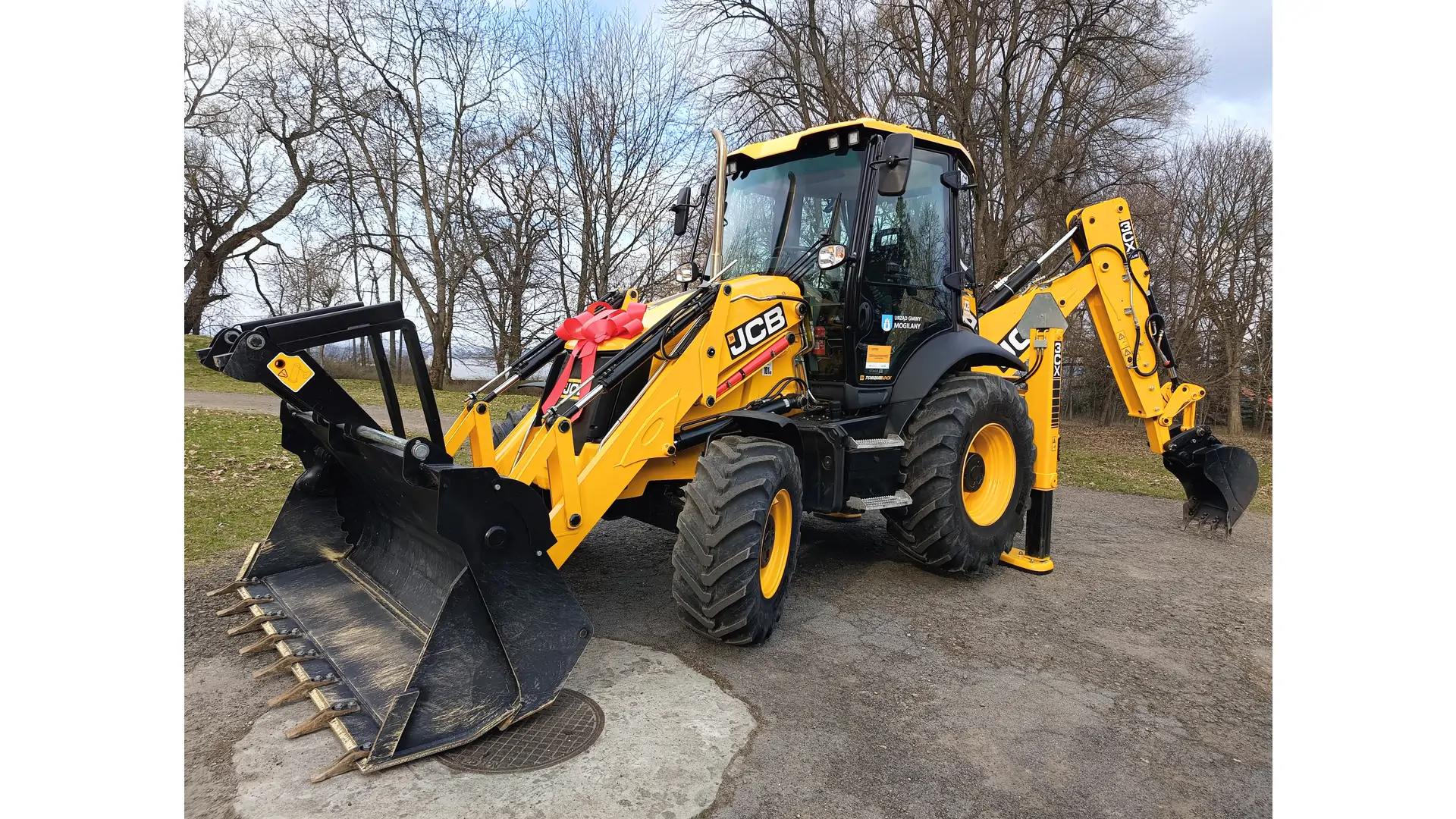Wydarzenie rozpoczęło się przed budynkiem zabytkowego dworu, gdzie zaprezentowano nowo zakupioną koparko-ładowarkę — maszynę niezbędną do szybkiego reagowania w sytuacjach kryzysowych.