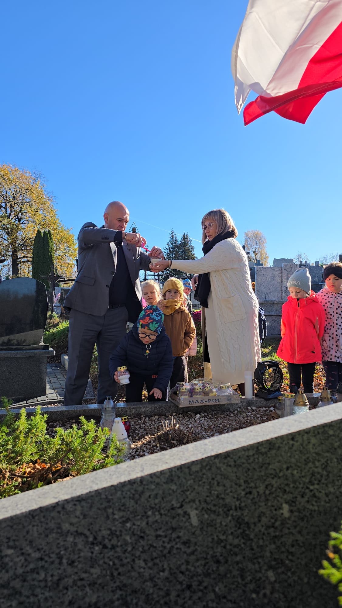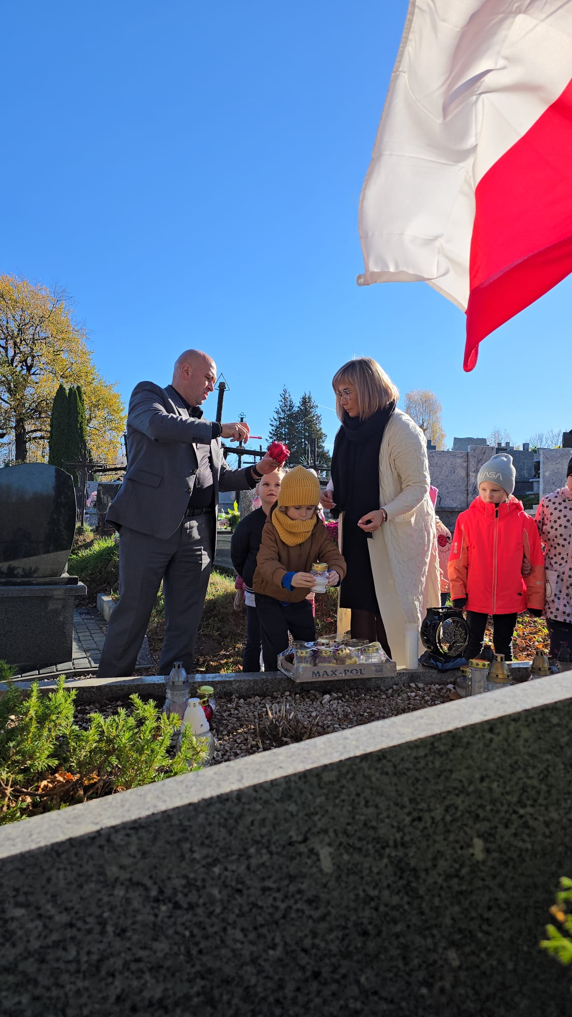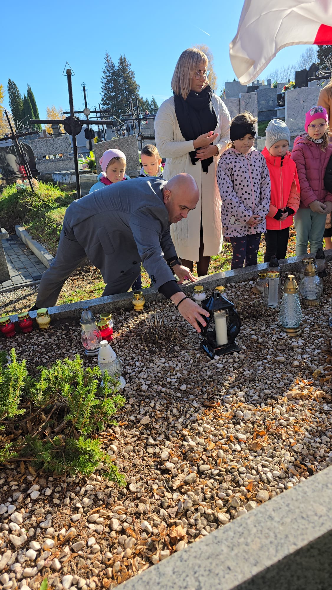 Dziś, w przeddzień uroczystości Wszystkich Świętych, Jerzy Przeworski – Wójt Gminy Mogilany wspólnie z grupą dzieci z Przedszkola Samorządowego w Mogilanach odwiedzili pobliski cmentarz, by złożyć kwiaty i zapalić znicz na grobie Poległych za Ojczyznę. Była to wspólna lekcja, która przypomina, że wolność i pokój, w jakich dziś żyjemy, mają swoją cenę – często najwyższą, jaką zapłacili ci, którzy walczyli za Ojczyznę. - W najbliższym czasie, gdy cmentarze rozświetlają tysiące zniczy, pochylmy głowy w zadumie i wdzięczności – nad grobami naszych bliskich, nad miejscami pamięci, nad tymi, którzy odeszli w imię wolnej Polski. Dziękuję Dyrekcji i dzieciom za dzisiejszą lekcję wartości – powiedział Jerzy Przeworski.